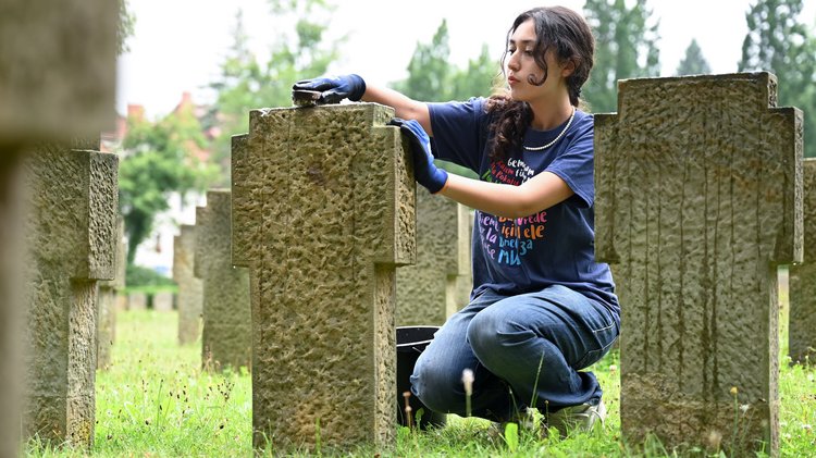 Pflegeeinsatz auf dem Eisenacher Hauptfriedhof bei einem internationalen Workcamp des Volksbundes Deutsche Kriegsgräberfürsorge e. V. (Bild: Volksbund Deutsche Kriegsgräberfürsorge e. V.)