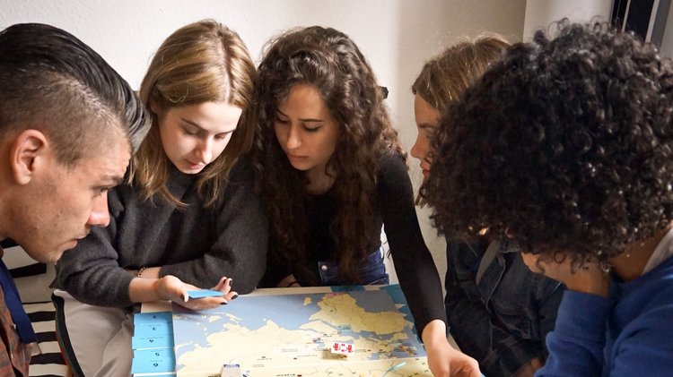 Jugendliche bei einem geschichtspädagogischen Spiel (Bild: Volksbund Deutsche Kriegsgräberfürsorge e. V.)