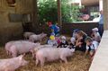 Mit der geernteten Ausbeute kam man zurück zum Hof. Dort angekommen, ging es in zwei Gruppen weiter. Während sich die erste Gruppe auf einen Hofrundgang aufmachte, konnte die zweite Gruppe im Kreativpavillon sich an einer von Ines Seidel vorbereiteten Bastelarbeit erproben, einer Sparbox mit verschiedenen tierischen Motiven. Auf dem Hofrundgang erlebten die Kinder aus nächster Nähe Hühner, Küken, Enten, Truthähne und vor allem neugierige Ferkel. Es war dem Gemeindeteam wichtig, dass die Kinder dabei lernen, dass Eier und Fleisch von lebendigen Tieren kommen, denen man mit Respekt und Achtung begegnen soll. Mutige konnten die Ferkel im offenen Stall auch streicheln und füttern. Dass es keine trockene Lehrstunde wurde, sondern ein abenteuerlicher, lehrreicher und vergnüglicher Nachmittag, dafür sorgten alle vom Team, denn sie hatten den Nachmittag zusammen gut vorbereitet. Sabrina Ehnert und Jennifer Ochs begleiteten neben Gastgeber Albrecht Roth und Matthias Flender vom Veranstalter, der Evangelischen Kirchengemeinde, die Kinder durch diesen Nachmittag. Auch zwei der neuen Konfirmanden, Moritz und Lenny, konnten als Betreuer für diesen Nachmittag gewonnen werden. | |||